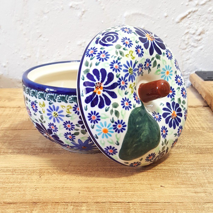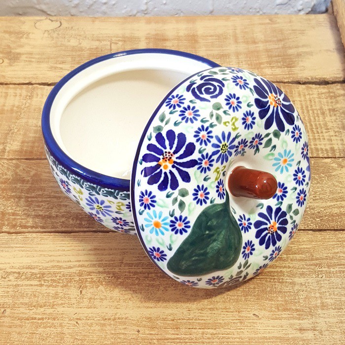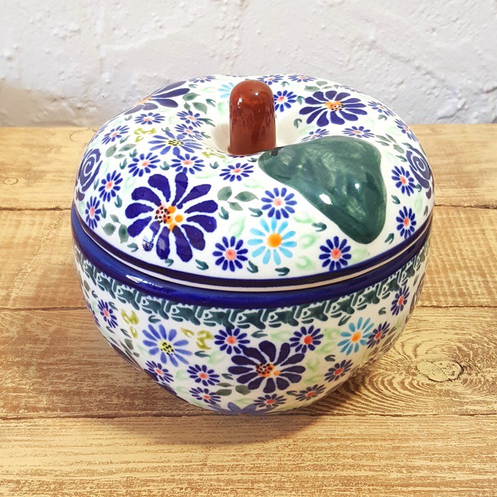 丈夫で熱に強く、電子レンジやオーブンもOKなのがポーランド陶器の魅力!りんごだけでなく、様々な蒸し物料理にも活用できます。! お菓子ジャーとして、テーブルにおいても素敵なインテリアに。