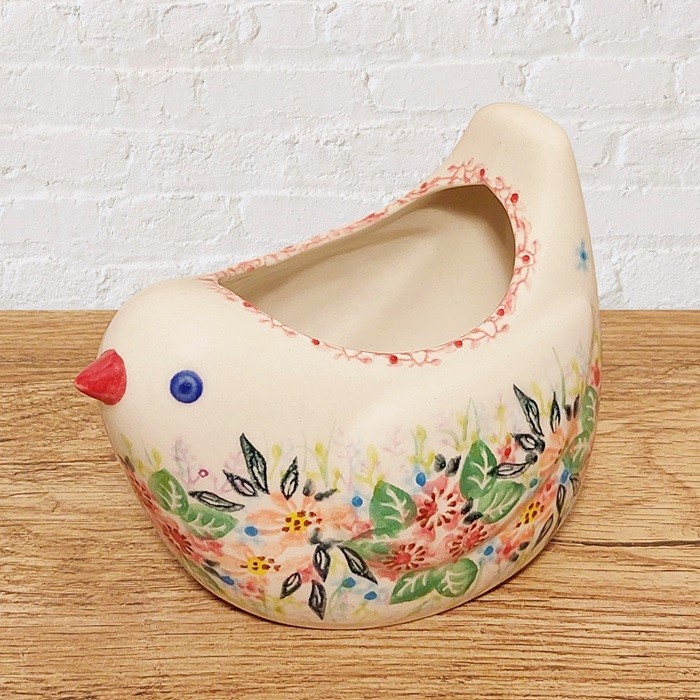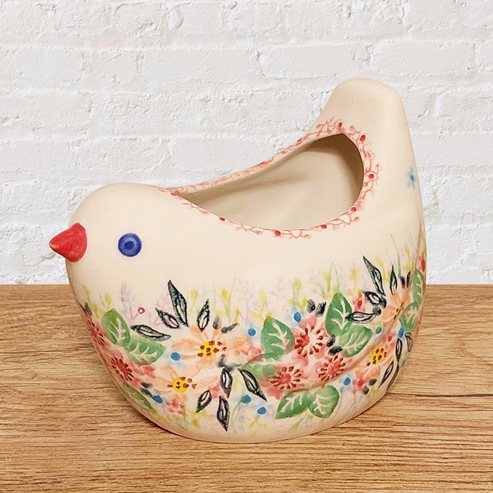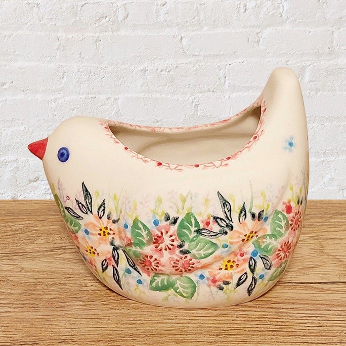 による、鳥の形をしたユニークな陶器のポットです。