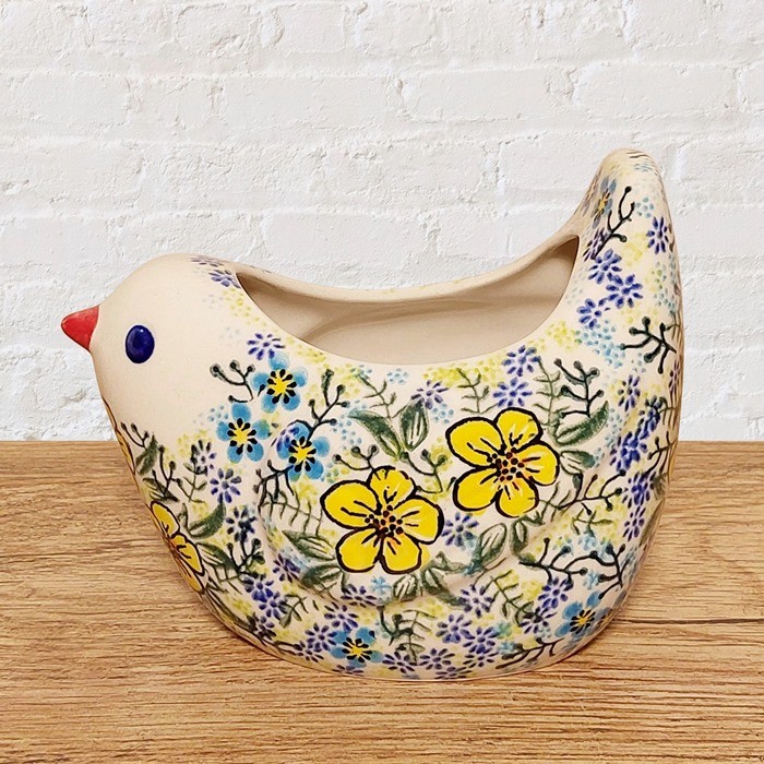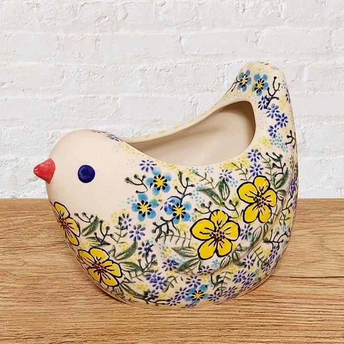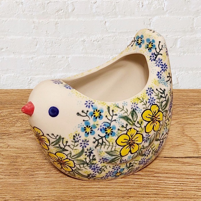 による、鳥の形をしたユニークな陶器のポットです。