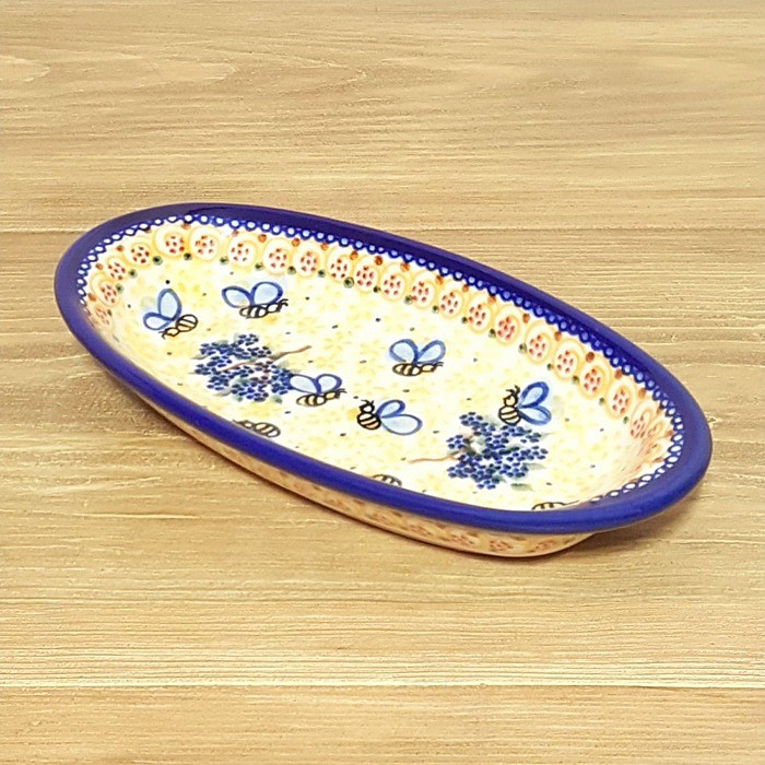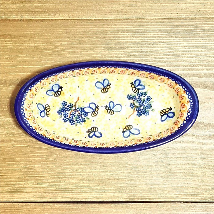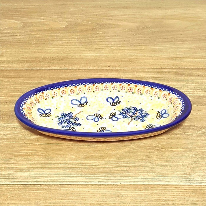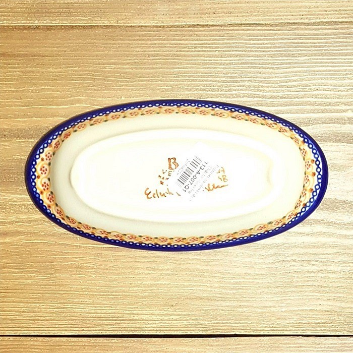 オーバル小皿 、寸法9 x 18.3 cm。