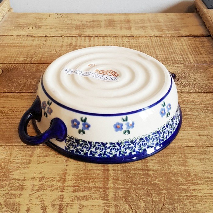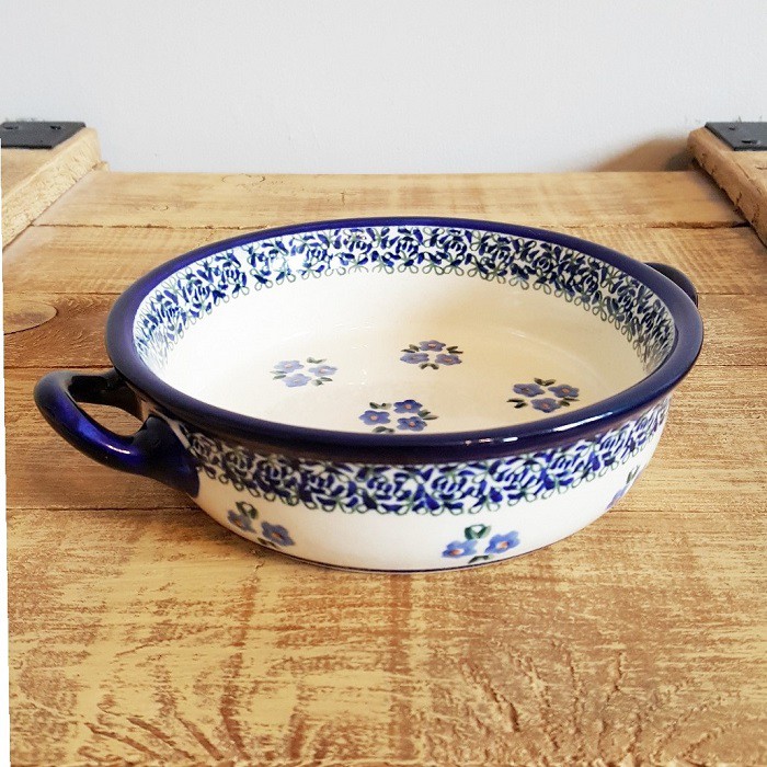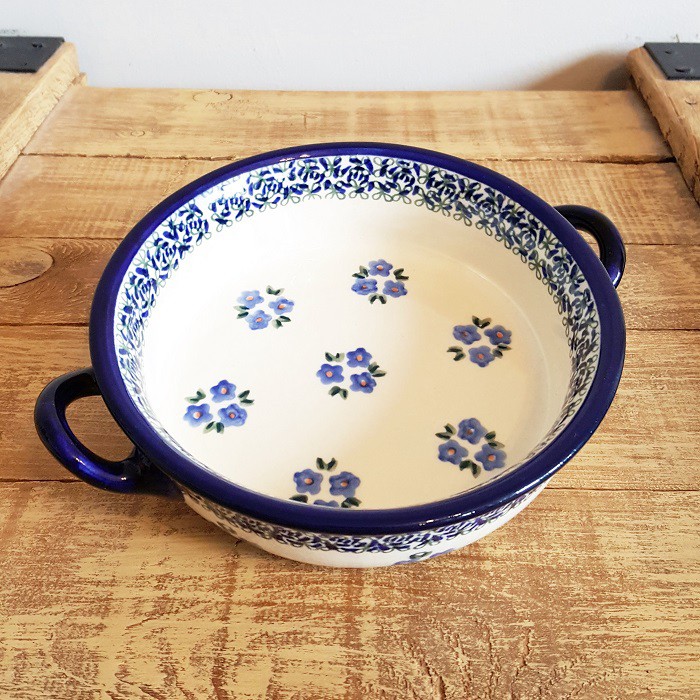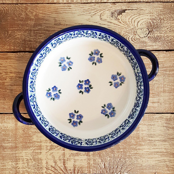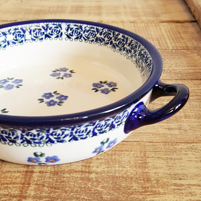 ふちに2つの持ち手がデザインされたとても可愛らしいオーブン対応のキャセロール。