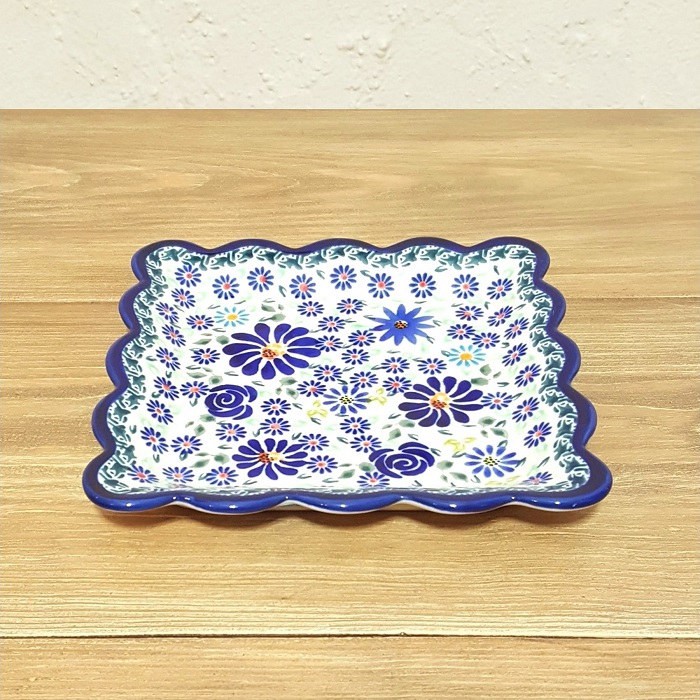 ふちが波のような形のスクエアープレート(角皿)です。