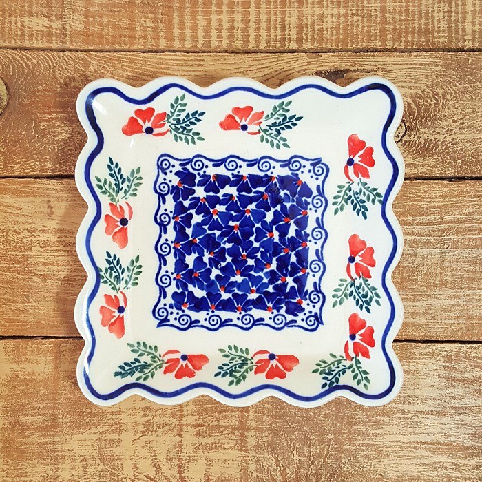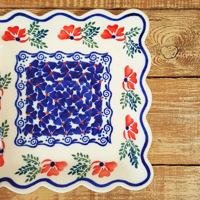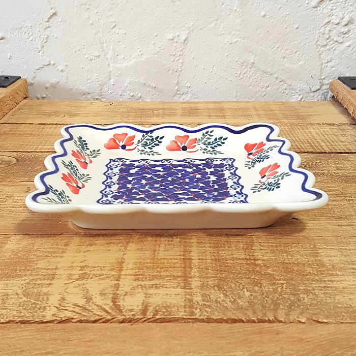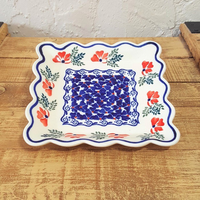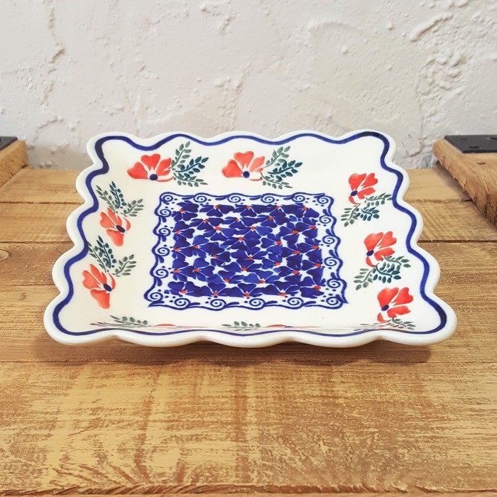 ふちが波のような形のスクエアープレート(角皿)です。