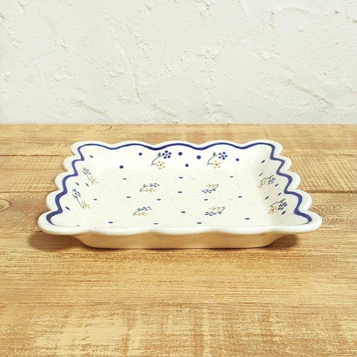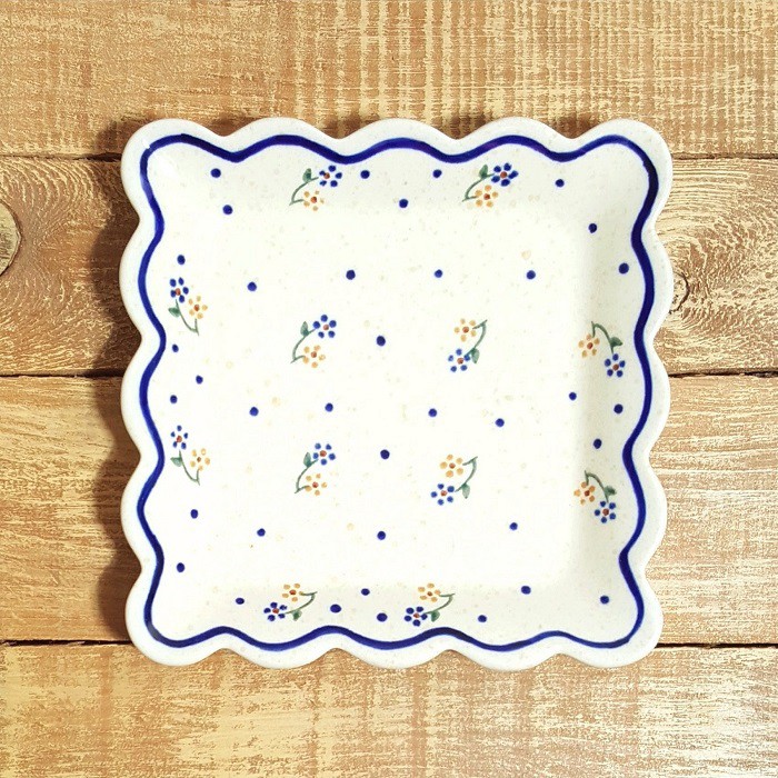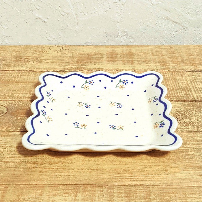 ふちが波のような形のスクエアープレート(角皿)です。