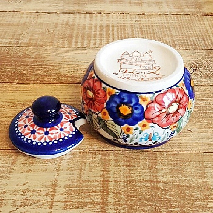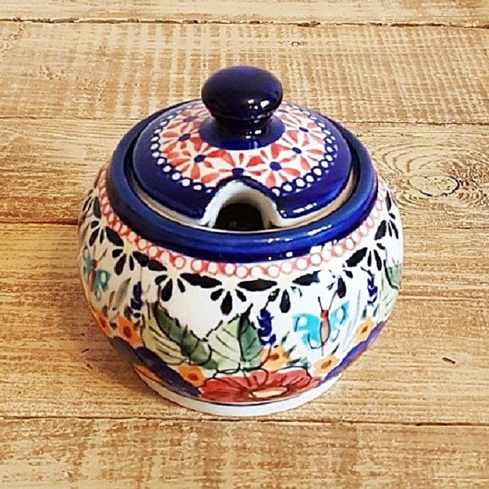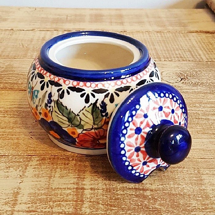 シュガーボウルの蓋には、スプーン穴と快適なハンドルがあります。