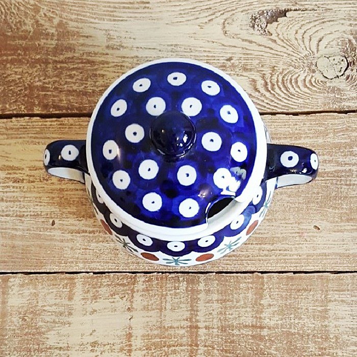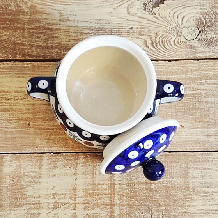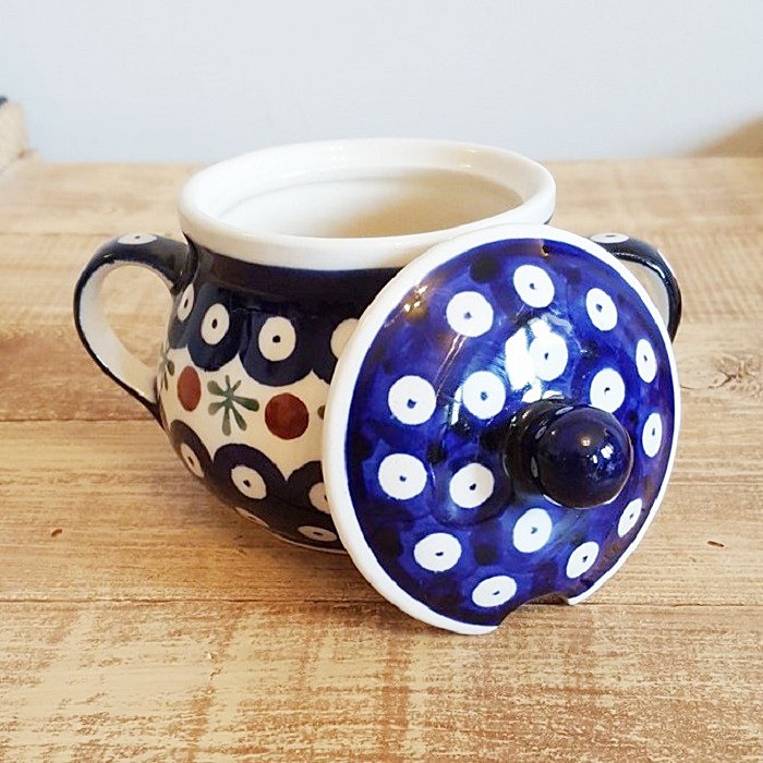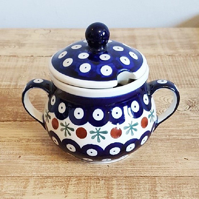 シュガーボウルの蓋には、スプーン穴と快適なハンドルがあります。
