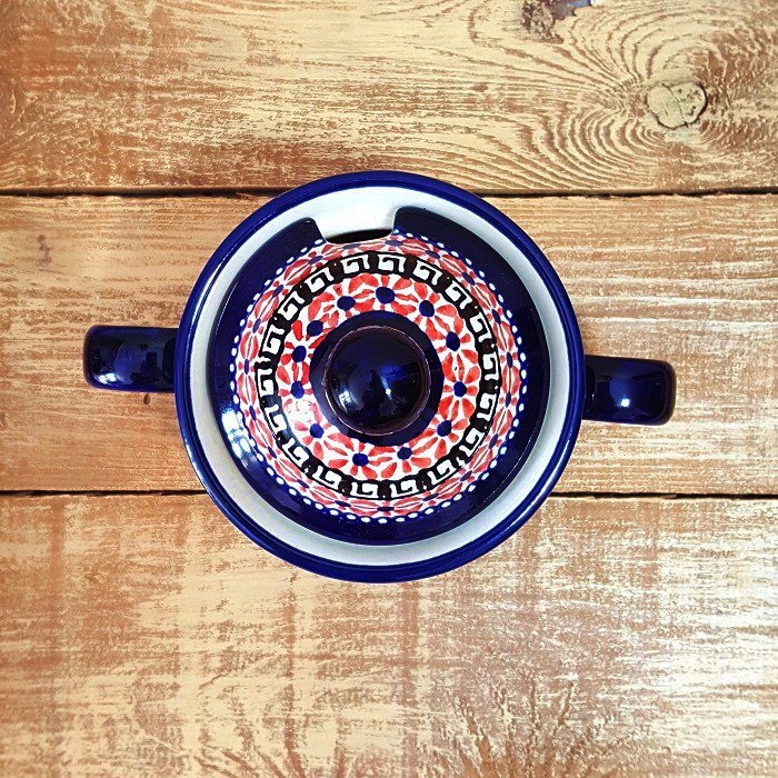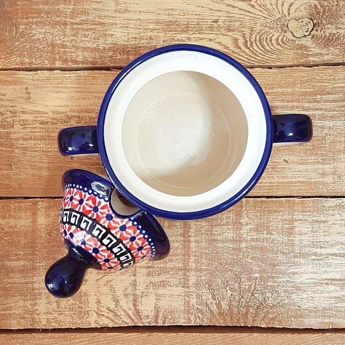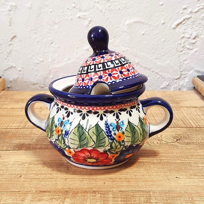 シュガーボウルの蓋には、スプーン穴と快適なハンドルがあります。